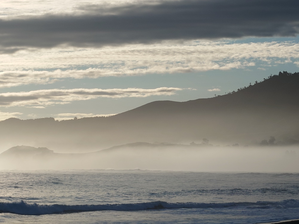 Outside the “Playa de La Isla” was flooded in golden light by the sunrise with clouds casting shades between the mountains, cliffs and the steaming ocean. What a promising set-up for a beautiful day. We started very early as we had a long distance ahead of us, and although the ocean looked so tempting to jump right into the waves, Robert promised me that there would be another beach when we arrive in the evening.