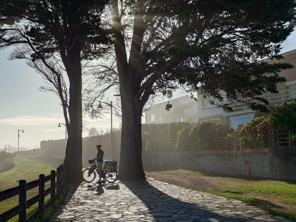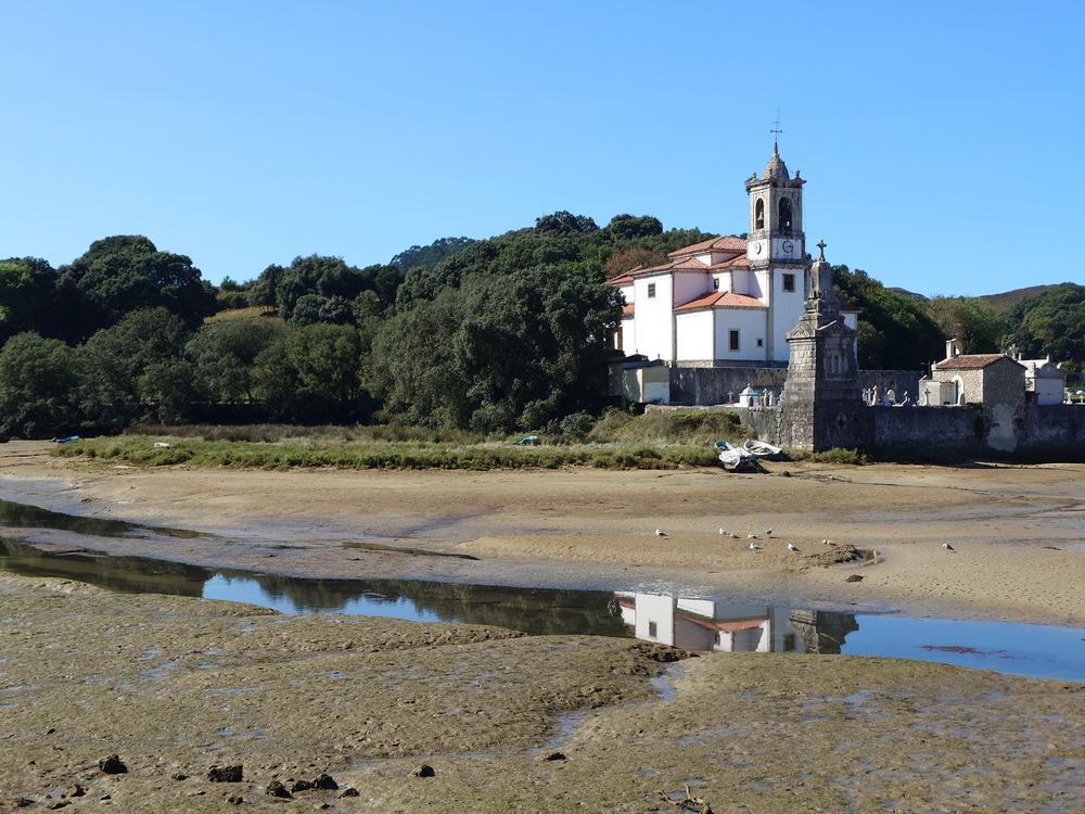 The tour over the foothills and along the coast continued to be rich in variation. Some beaches were still secret spots while others were completely crowded with cars parked all over. We passed the river bed of the Ría de Barro with its church that is usually mirroring in the tidal flood, but now it was low tide and we saw mostly mud.