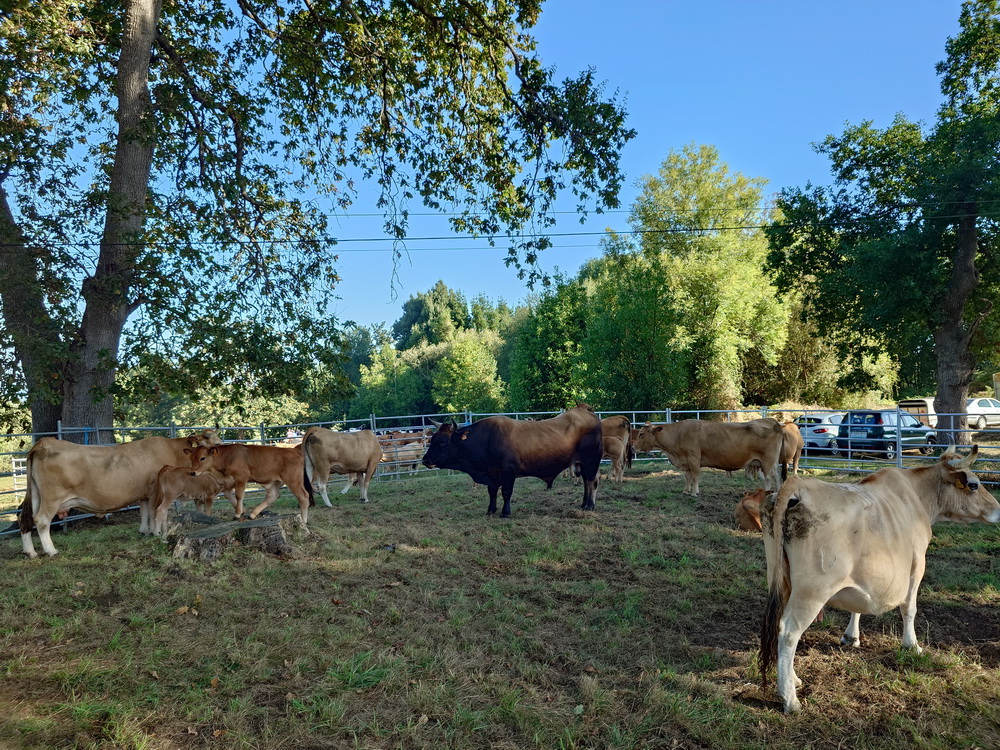 But at least I could convince Robert to follow the pilgrims hiking trail along the beaches and cliffs, even if we had to get off our bikes every once in a while, where mother nature offered us the most spectacular landscapes in the mist of the ocean breeze. We were so tempted to continue along the ocean, but we got stuck in a bay at a dead end of a road from where a steep hiking trail for pilgrims continued, which was impossible to be done with our bikes. So we had to return on the cliff road to climb up to Caravia Alta, where we found ourselves in the middle of a cattle-market and beauty contest for oxen and cows. You could easily tell that the industrial cattle breeding still hadn’t made its way into this traditional region, and farmers were sharing their lives with their farm animals, their hearts filled with pride.