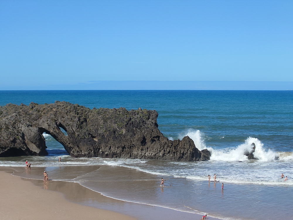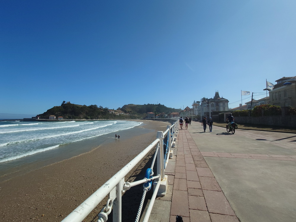 At Ribadasella there was another Playa de Santa Marina, which must already in the 19th century have been a place for rich people to have their villas and chalets right by the seaside. Now it was a perfect surf spot and it was a real joy to watch. We were looking for a place to have lunch, and there was a barkeeper at the Surfcamp Ribadesella who told us that they didn’t have their restaurant kitchen open anymore, but they would be able to offer us some snacks. At the end we waited for more than an hour until we finally got some fried food for which it had not really been worth the wait. It could have been such a cool place to enjoy, but it turned out to be the total ripoff.